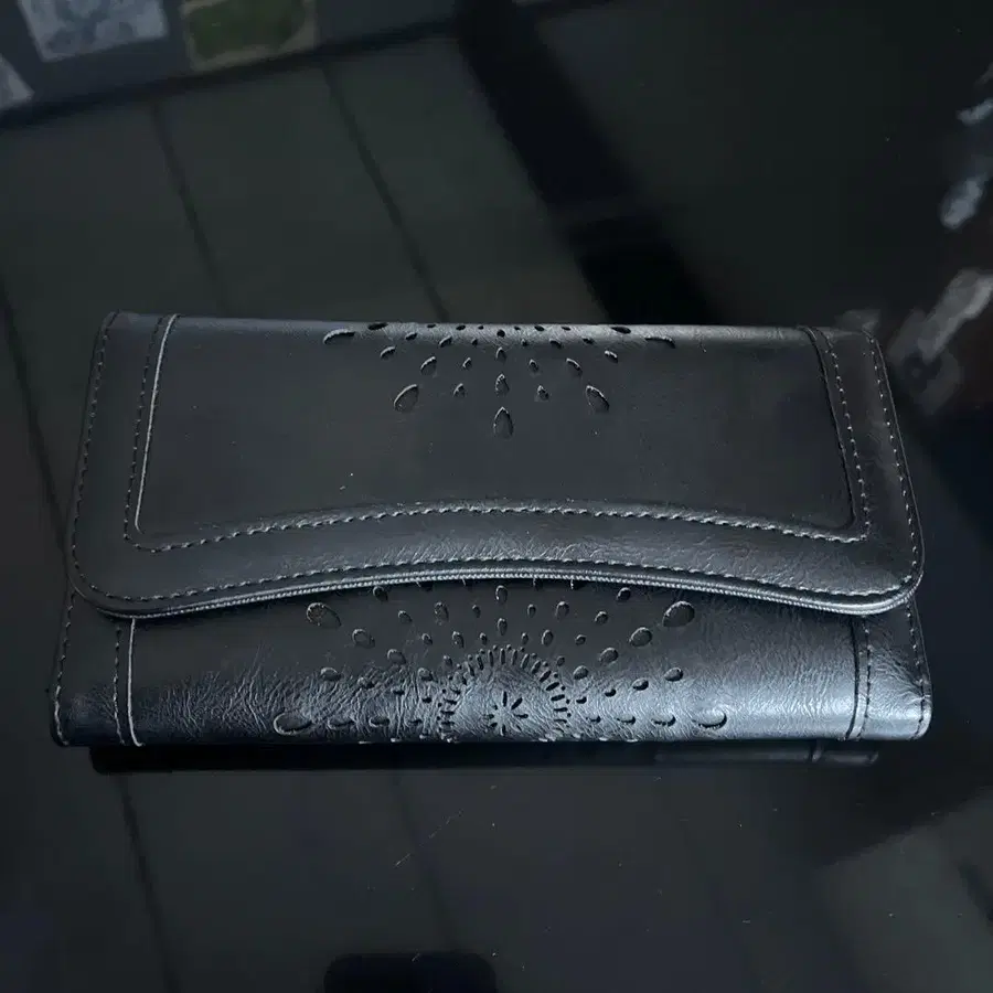 블랙 가죽 장지갑 엠보싱 가공