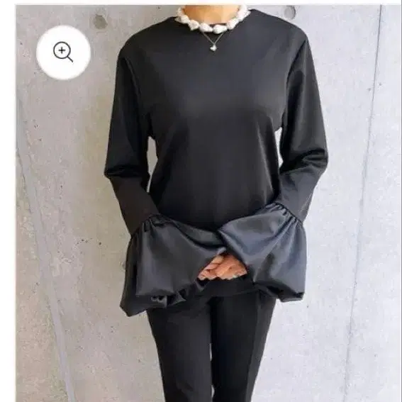 다른 소재의 절개 디자인으로, 새틴의 광택과 풍성한 개더가 들어간 볼륨감 있는 소매가 임팩트 있는, 누가 봐도 시선을 사로잡는 대담한 플라워 슬리브 티셔츠.