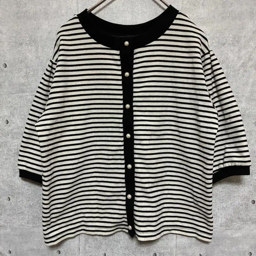 스트라이프 패턴의 반팔 가디건