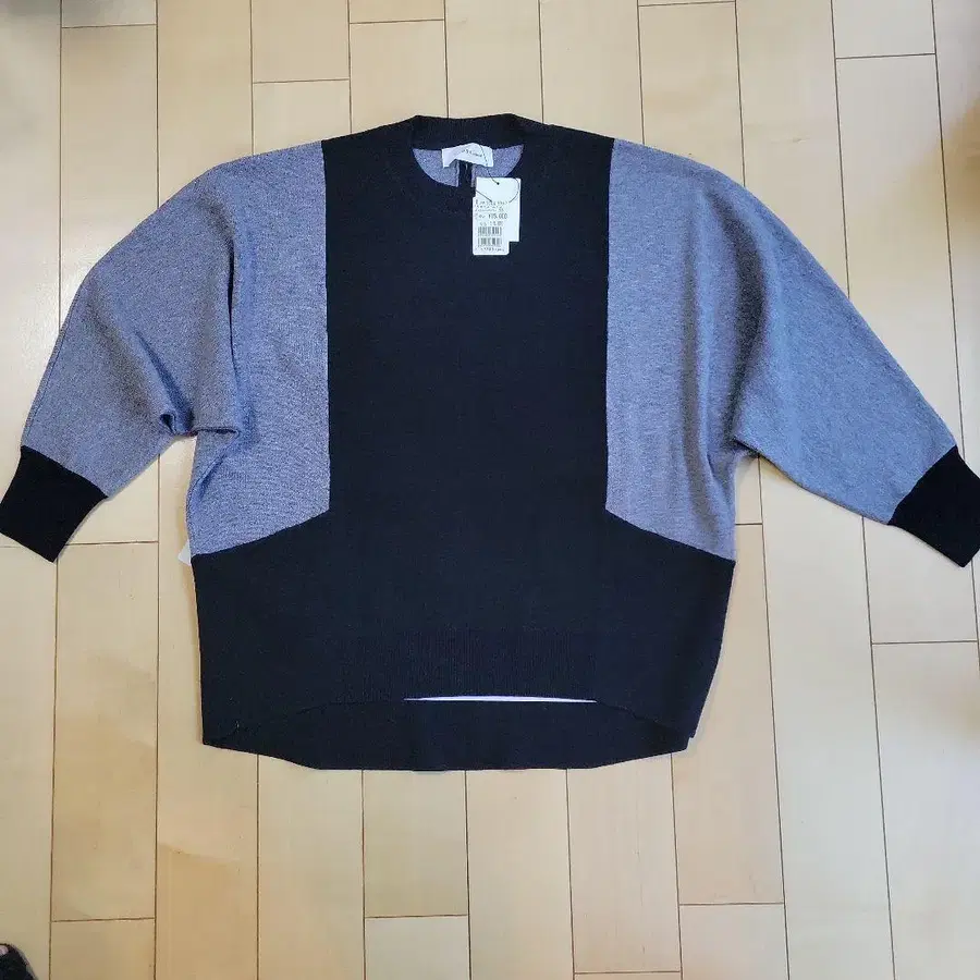 블랙과 그레이 배색이 특징인 니트 스웨터, 사이즈 38. 미사용이지만, 자택 보관품이므로 '미사용에 가까움'으로 했습니다. 신경 쓰이시는 분은 구매를 삼가해 주십시오.
