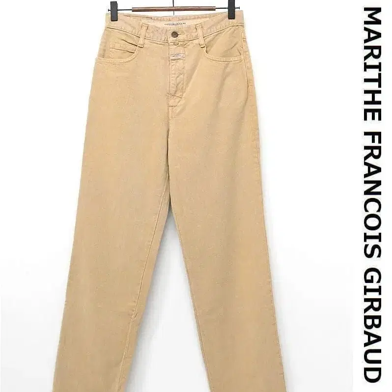 B369/MARITHE FRANCOIS GIRBAUD 데님 청바지 팬츠 지퍼 플라이 하이웨스트 텐셀 스트레치 가죽 패치 L 베이지 일본제