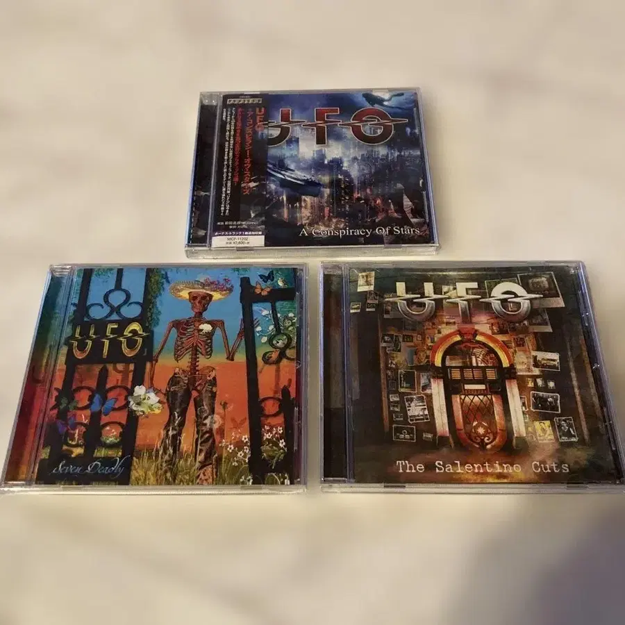 UFO 앨범 3장 세트, 각 타이틀이 다른 컬렉션. - 타이틀: A Conspiracy of Stars - 타이틀: The Salentino Cuts - 타이틀: Seven Deadly - 아티스트명: UFO 방문해 주셔서 감사합니다.