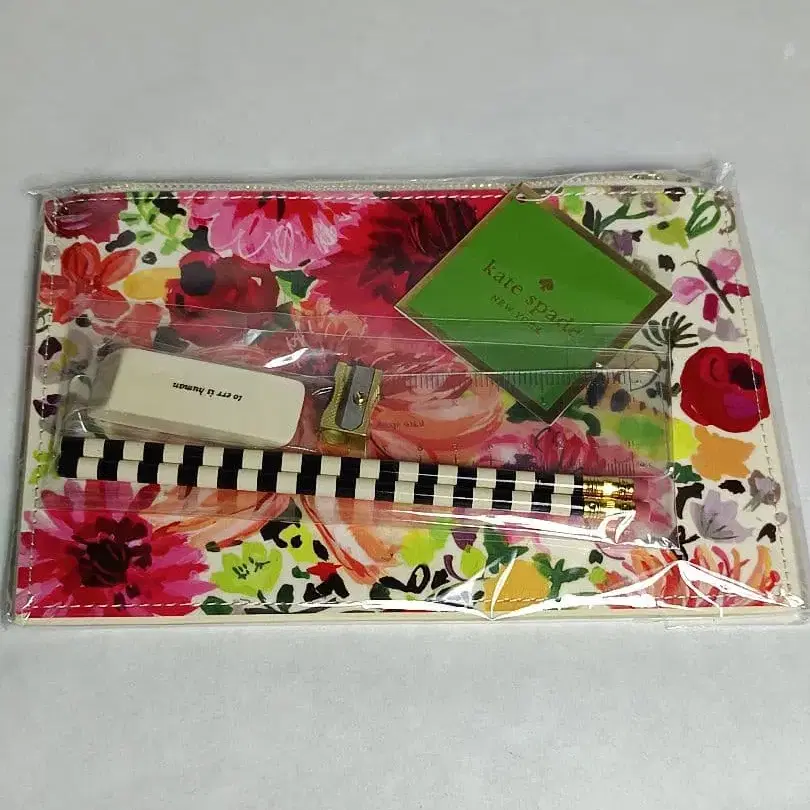 플라워 프린트 파우치에 펜, 지우개, 연필깎이가 부속되어 있습니다. - 브랜드: kate spade - 디자인: 플라워 프린트 - 부속품: 펜, 지우개, 연필깎이 - 색상: 멀티 컬러 - 소재: 합성 피혁 방문해 주셔서 감사합니다.