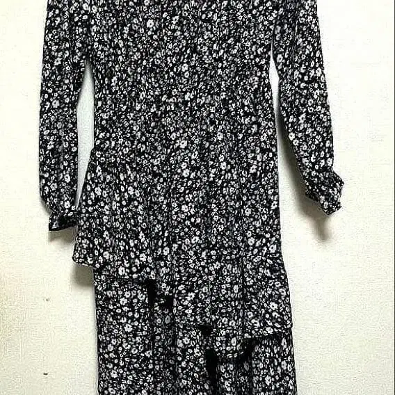※ 구매 전 반드시 프로필을 확인해 주세요 ※ 블랙 베이스에 화이트 꽃무늬가 있는 긴팔 비대칭 원피스. - 디자인: 꽃무늬 - 컬러: 블랙, 화이트 - 소매 길이: 긴팔 - 스타일: 비대칭 - 소재: 티셔츠 - 기장: 롱 방문해 주셔서 감사합니다. 사이즈 - M
