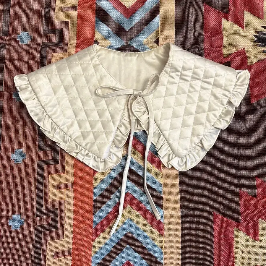 탈착식 옷깃 퀼팅 프릴 화이트 실크