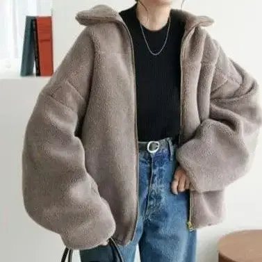 부드러운 폴리에스테르 소재의 그레이 블루종입니다. 넉넉한 실루엣이 특징입니다.
