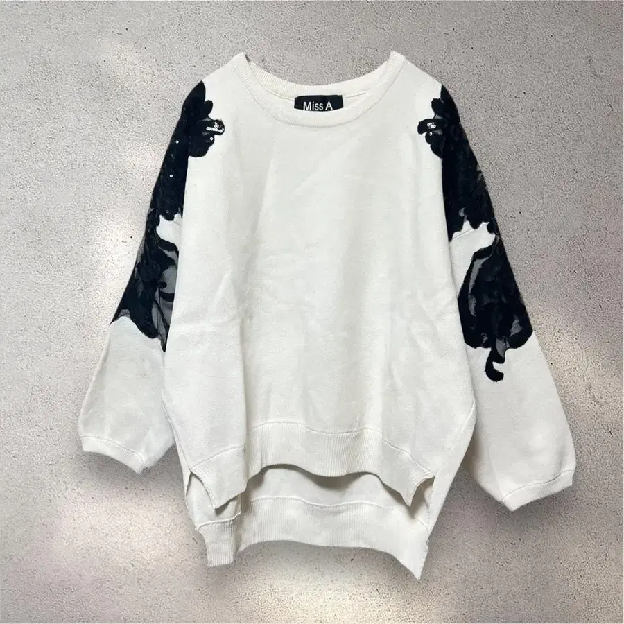 Miss A 7부 소매 티셔츠 F 꽃무늬 레이스 피쉬테일 화이트 블랙