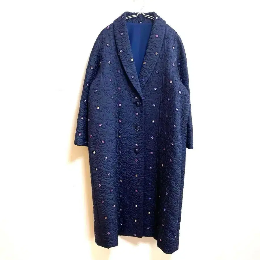 [카와모토 드레스] 숄카라 롱 코트 총 자수 패턴 앞 버튼 F