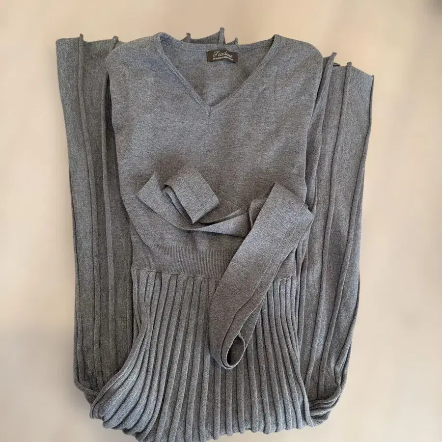 그레이 V넥 플리츠 니트 원피스