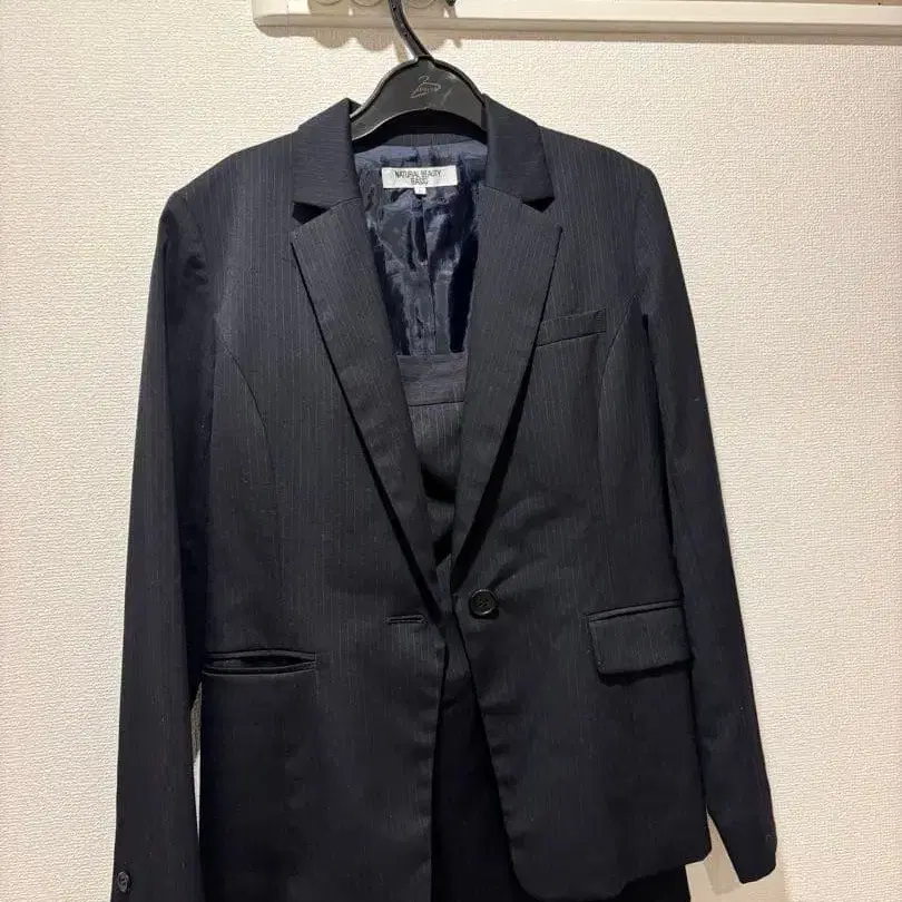 다크 네이비 스트라이프 싱글 버튼 자켓 스커트 수트 상하의