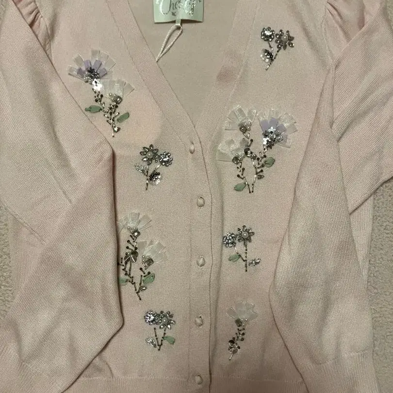 화려한 자수와 비쥬가 장식된 핑크색 가디건. - 브랜드: Chesty - 사이즈: F - 색상: 핑크 방문해 주셔서 감사합니다. 사이즈 - M 사이즈 - FREE SIZE