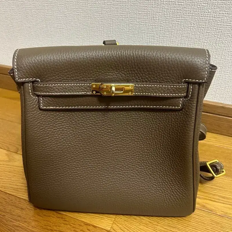 안쪽에는 포켓이 있습니다. 소재: 소가죽 컬러: 토프 사이즈: 약 가로 23cm x 세로 23cm x 11cm(외형 치수) ※ 약간의 사용감이 있습니다. 럭셔리 고급 천연 가죽 그레이지 베이지