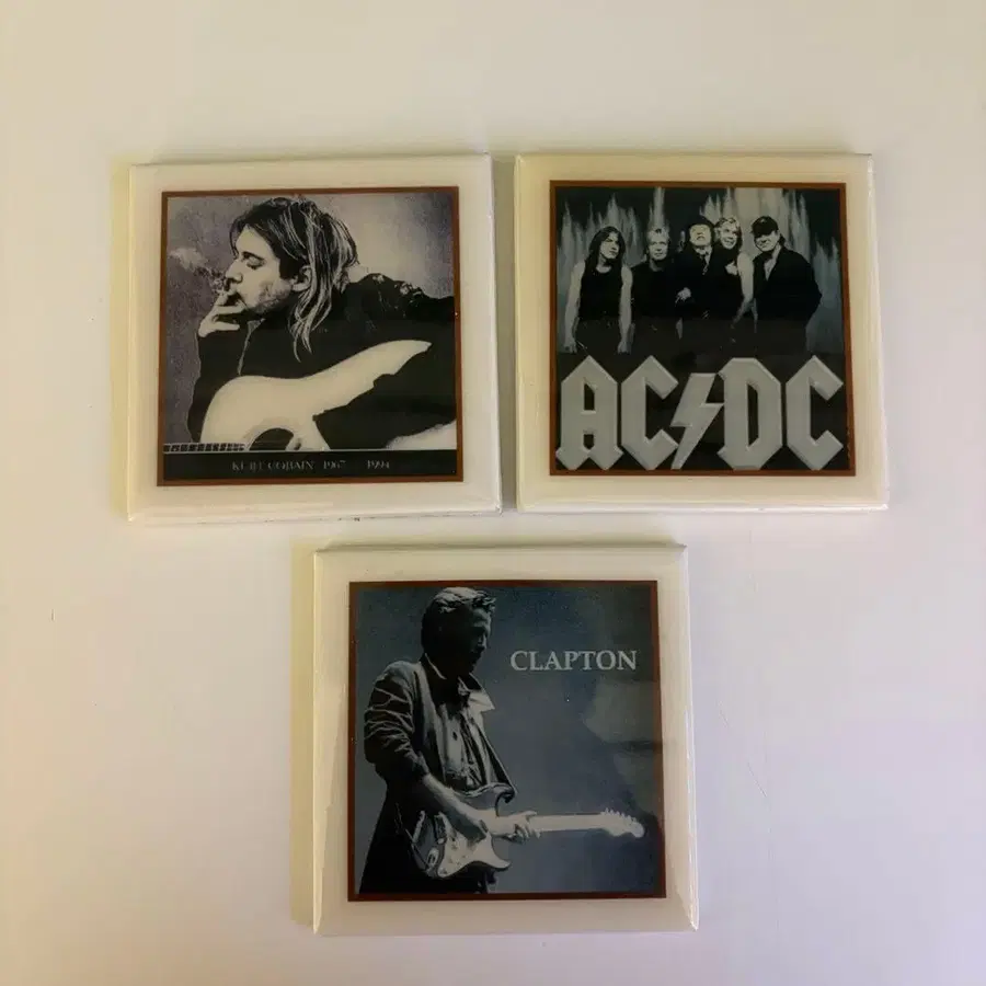 자동 번역되었어요. 원문보기닐바나, AC/DC, 에릭 클랩튼의 아트가 새겨진 코스터 3개 세트입니다.