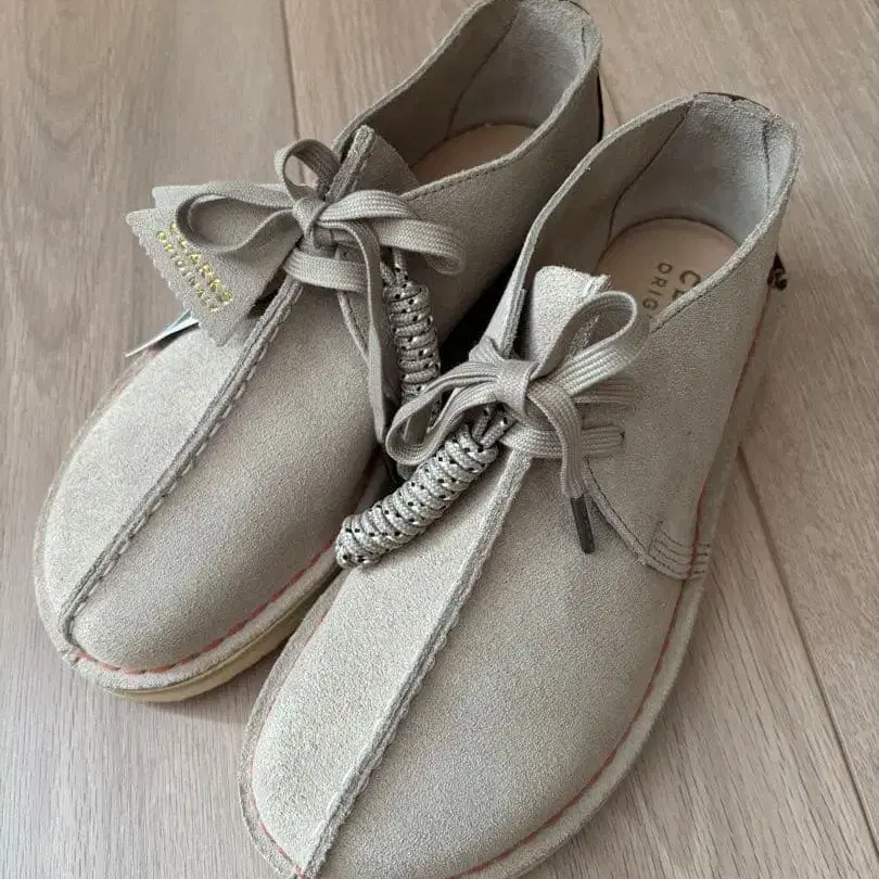 클락스 데저트 트렉 시착만 한 상품입니다. 세세한 부분은 신경 쓰이지 않는 분 잘 부탁드립니다. - 색상: 베이지 - 소재: 스웨이드 - 디자인: 로고가 있는 힐 - 밑창: 러버 솔 방문해 주셔서 감사합니다.