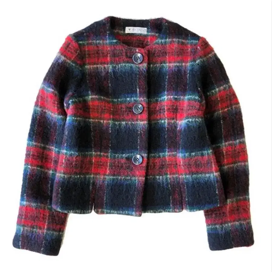 자동 번역되었어요. 원문보기빨간색과 블랙 체크 무늬의 노카라 자켓, 캐주얼 스타일에 최적.