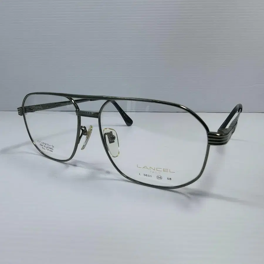 Lancel L-3631 그레이 색상 티타늄 소재 투 브릿지 사진에는 검게 보이지만 실제로는 그레이 색상입니다. [ 사이즈 ] 렌즈 가로 폭: 56mm 렌즈 천지 폭: 46mm 브릿지 폭: 16mm 템플 길이: 145mm 당시 정가: ¥29,400 플라스틱 데모 렌즈가 들어 있습니다. 사용 시 안경점에서 렌즈 교환, 조정을 해주십시오. 본가 안경점의 데드스탁, 창고 보관품입니다. 미사용품으로, 오래되었지만 눈에 띄는 흠집은 보이지 않습니다. 경년 변화로 인한 변색 등은 사진을 확인해 주십시오. 나사 회전 확인 완료했습니다. 케이스, 안경닦이는 포함되지 않습니다. 관리번호: 055 색상 - 그레이 계열 프레임 소재 - 금속 얼룩, 찢김, 냄새 등 - 없음