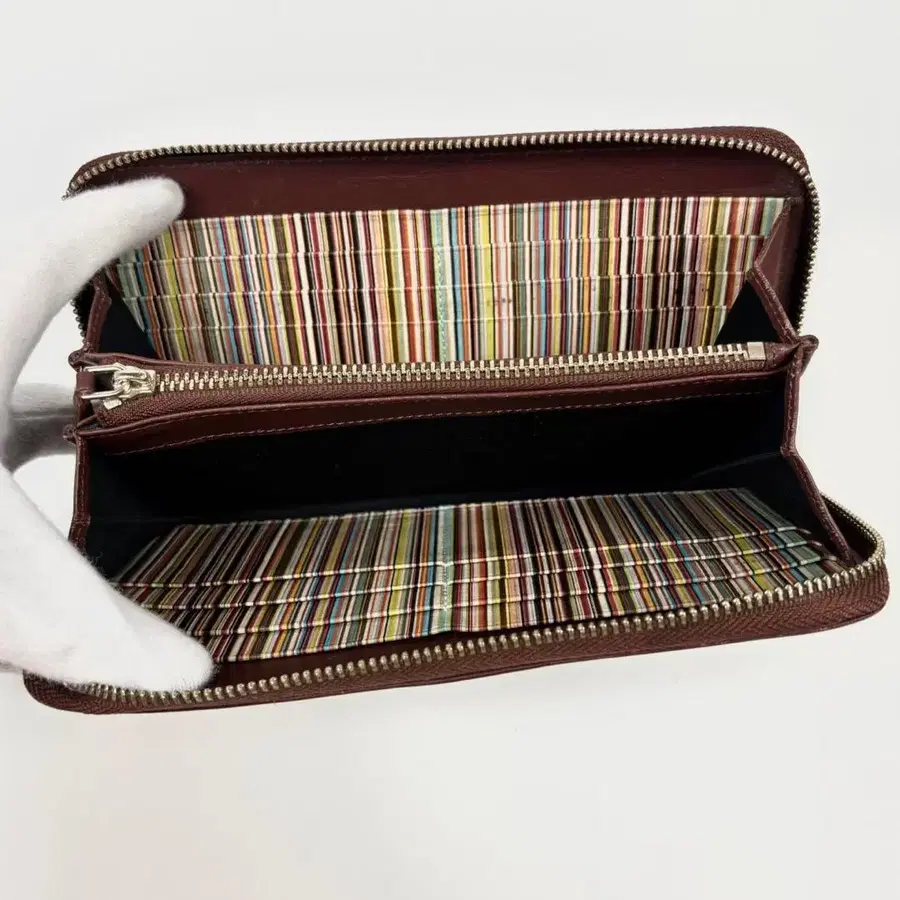 폴스미스 라운드 지퍼 멀티 스트라이프 가죽 브라운 장지갑