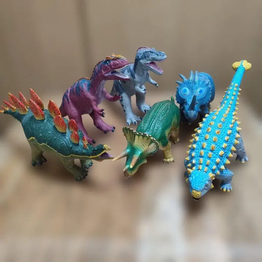 리얼한 디테일의 공룡 피규어 6개 세트. - 종류: 공룡 피규어 - 크기: 40cm 정도 - 소재: 부드러움 - 수량: 6개 세트 - 특징: 리얼한 디테일과 질감 상태는 좋습니다. 방문해 주셔서 감사합니다.