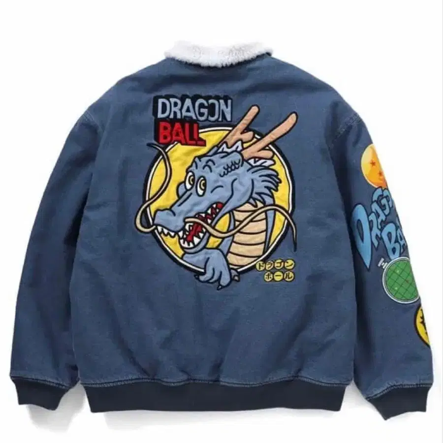 미사용 새상품입니다. - 디자인: 드래곤볼 자수가 놓인 데님 자켓 - 색상: 다크 블루 - 소재: 데님 - 특징: 플리스 옷깃, 뒷면에 드래곤 자수 - 장식: 드래곤볼 심볼 자수 사이즈 L 에어캡으로 감싸고 갈색 종이에 싸서 발송합니다.