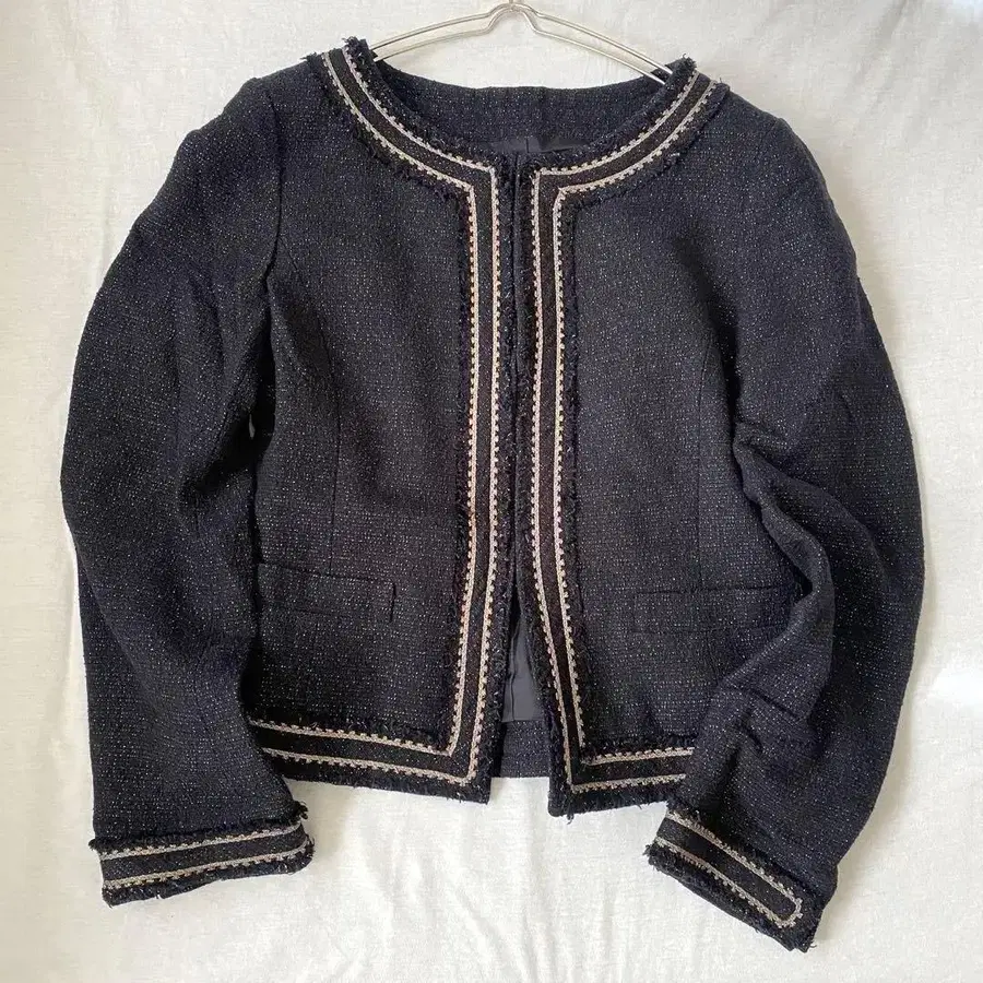 [ 새상품급 ] LDS 믹스 트위드 노카라 자켓 M 프린지 라메 혼방