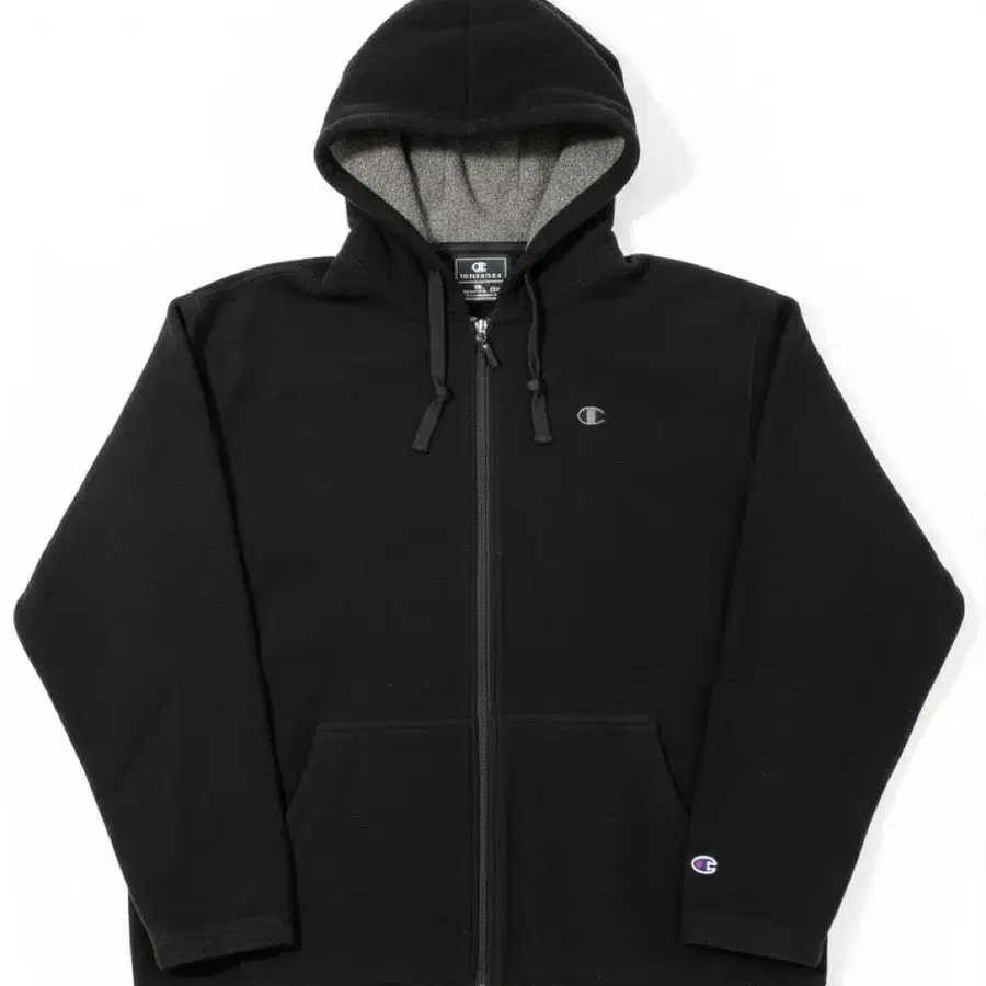 탄탄한 플리스 소재의 블랙 풀 집업 자켓, 안감은 보아 소재로 따뜻함을 제공합니다.