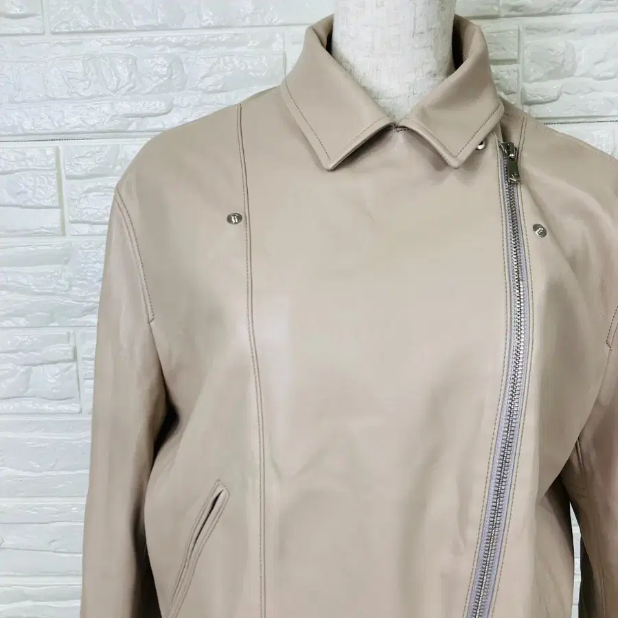 #키요코타카세 #KTKIYOKOTAKASE #라이더 자켓 #페이크 가죽 자켓 #가죽 자켓 #아우터 #자켓 #베이지 자켓 #일본제 #파이브 폭스 #M 사이즈 #9호 #깔끔한 #캐주얼 #심플 #봄/가을 코디 #여성 중고 의류 #여성 빈티지 #비대칭 지퍼 #숏 기장