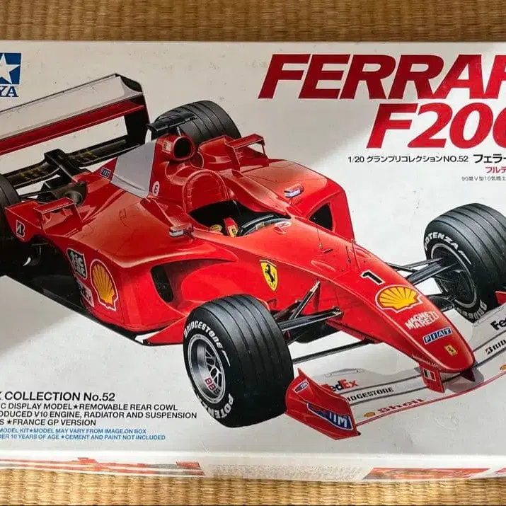 정밀한 디테일과 부품으로 구성된 페라리 F2001 프라모델 키트.