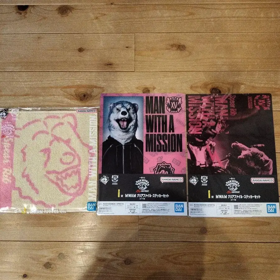 MAN WITH A MISSION 제일복권, 핸드 타월과 클리어 파일 스티커 세트 2종의 3점 세트입니다.