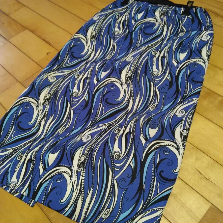 블루 계열의 추상적인 무늬가 특징인 타이트 스커트, 엘라스틱 허리로 편안한 착용감. - 색상: 블루 계열의 추상적인 무늬 - 디자인: 엘라스틱 허리 - 소재: 폴리에스테르 탄탄한 원단입니다! - 택: 택 포함 새상품 허리 35cm 총길이 약 78cm 방문해 주셔서 감사합니다.