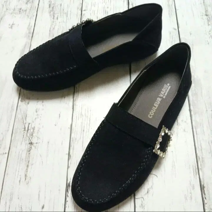 스웨이드 비쥬 모카신 로퍼 블랙 슬립온