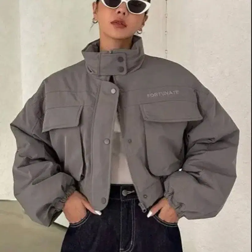 Loose 오버 숏 하이넥 패딩 자켓 애쉬 그레이 M