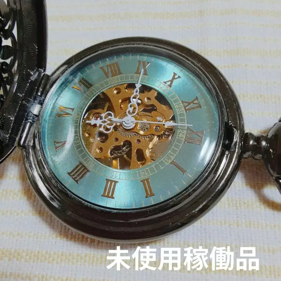 앤티크풍 스켈레톤 디자인 회중시계입니다. 덮개에는 섬세한 조각이 새겨져 있으며, 다이얼은 로마 숫자로 되어 있고 내부의 기계가 들여다보이는 디자인이 특징입니다. 체인도 부속되어 있어 패션의 악센트로도 사용하실 수 있습니다.