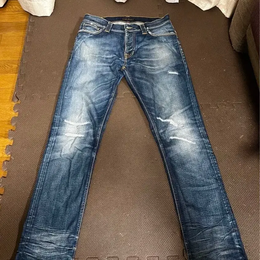 누디진 그레이 데미지 슬림핏 데님 팬츠 W31 L32