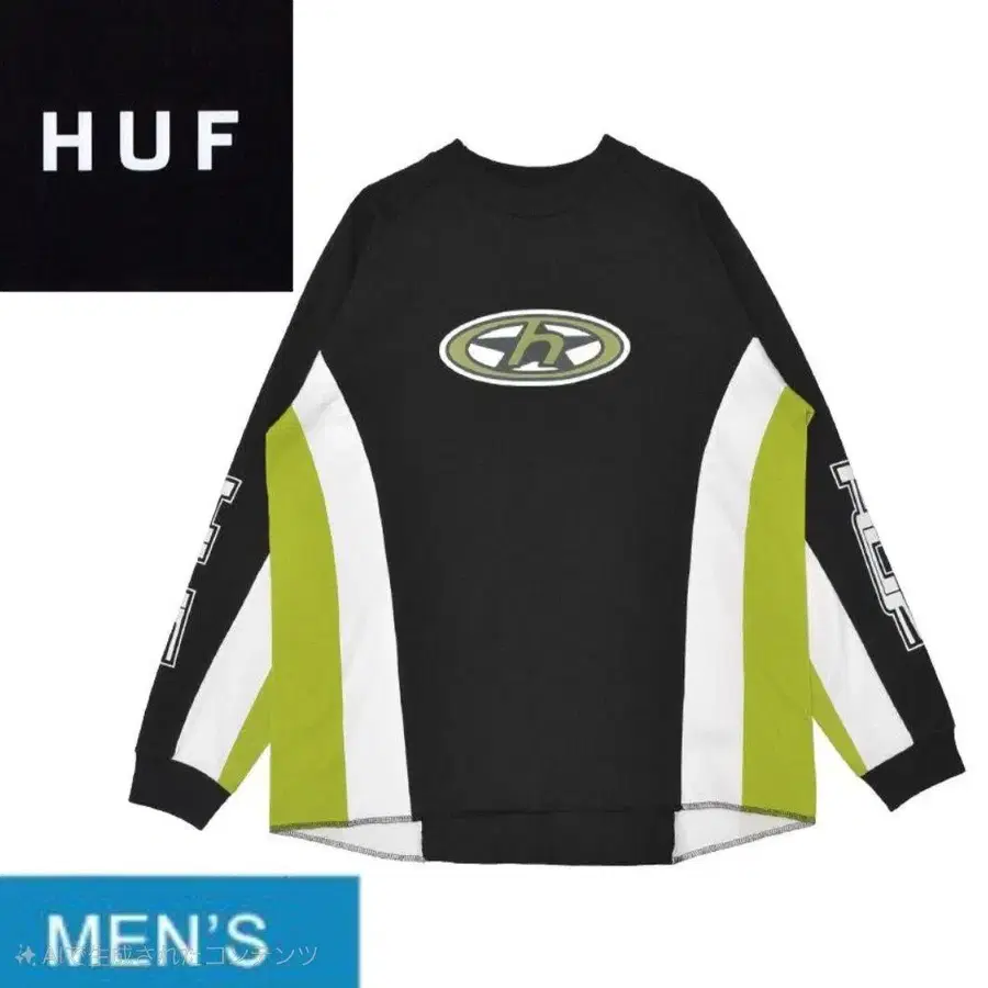 홀샷 모토 저지 스타일의 긴팔 티셔츠, 움직임을 중시한 디자인. - 브랜드: HUF - 색상: 블랙/그린/화이트 - 디자인: 홀샷 모토 저지 스타일 - 스타일: 래글런 슬리브 - 용도: 캐주얼/스포츠 - 로고: 프론트에 큰 로고 있음 방문해 주셔서 감사합니다.