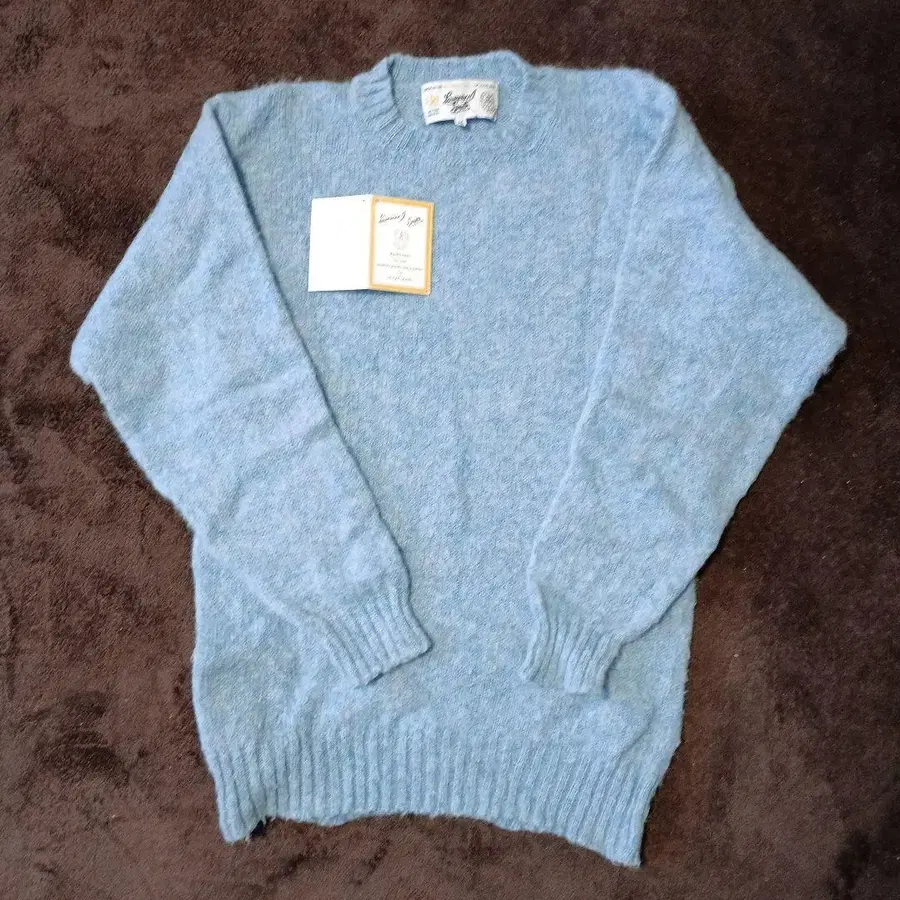 색상 - 색스 블루 넥 - 크루넥 소재 - 울 M 사이즈 정가 19,800엔 (세금 포함) bshop 별주 LAURECE J. SMITH 색색깔의 트위스트 얀을 사용한 컬러풀한 색스가 멋스럽습니다. 부드럽고 소박한 질감의 샤기 도그 스웨터. 적당히 막힌 넥라인에, 와이드한 리브, 클래식한 실루엣이면서도 절묘한 밸런스의 형태는 어떤 하의와도 잘 어울립니다. 시간과 기술이 필요한 심리스 제법을 채용하여, 사이드에 이음새가 없어 착용 시 부분적인 압박감이 없고, 모양이 망가지기 어려운 것도 매력입니다. 2023년 1월에 bshop에서 구매 그 후, 시즌당 두 번 정도 착용했으며, 이번 시즌에는 착용하지 않았습니다. 판매되지 않으면 조금씩 가격을 인하할 예정이니 관심 있으신 분은 확인 부탁드립니다! 잘 부탁드립니다. 할리 오브 스코틀랜드 비샵