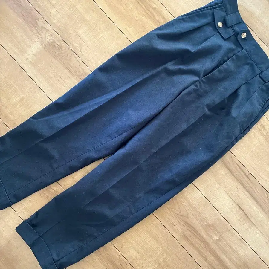 네이비 컬러 슬랙스, 골드 버튼 포함, 사이즈 1. - 브랜드: foufou - 색상: 네이비 - 버튼 디자인: 골드 버튼 - 사이즈: 1 방문해 주셔서 감사합니다. 사이즈 - M 약간의 보풀이 있지만, 홈 클리닝으로 제거 가능할 것으로 생각됩니다.