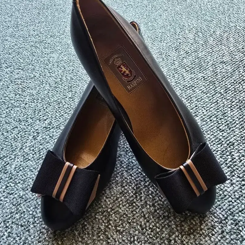 리본 포함 블랙 플랫 펌프스 RASPINI