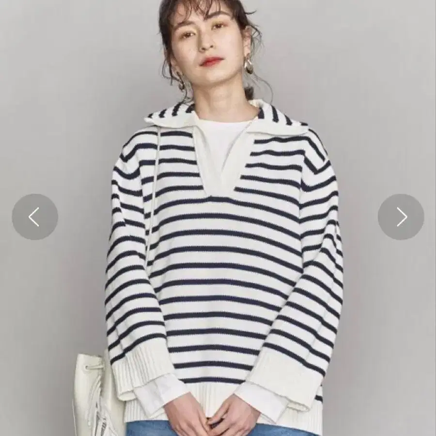 화이트 x 블랙 보더와 옷깃이 마린풍으로 귀여우며, 매너리즘에 빠지기 쉬운 스타일에 자극을 주는 디자인입니다.