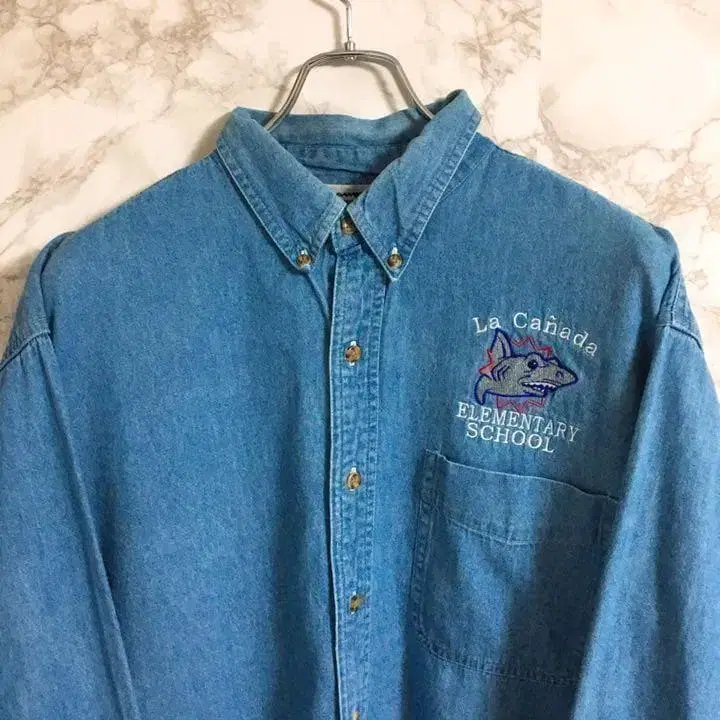 버튼 다운 데님 셔츠입니다.