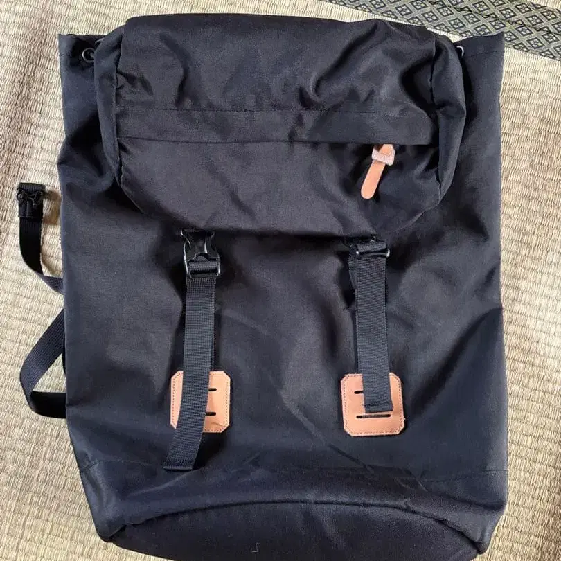 심플하고 기능적인 블랙 백팩. 조정 가능한 스트랩과 지퍼 포켓이 있습니다.
