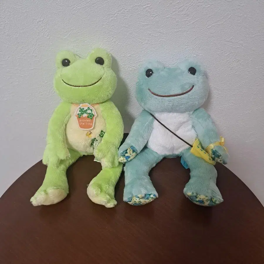 개구리 피클스 2체 세트, 스프링 비니 인형 클로버와 민트 레몬. - 캐릭터명: 개구리 피클스 - 색상: 그린, 파랑 - 사이즈: 약 30cm - 특징: 택 없음 - 소재: 봉제 인형 방문해 주셔서 감사합니다.