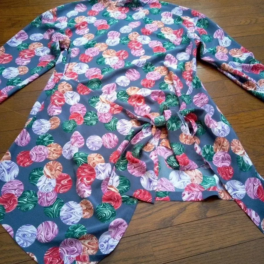 컬러풀한 공 무늬가 특징인 긴팔 셔츠입니다. 재단 후 그대로 서랍에 보관했습니다. 가슴 너비 50 기장 76 - 색상: 그레이에 컬러풀한 무늬 - 디자인: 긴팔, 라운드넥 - 특징: 컬러풀한 공 무늬 프린트 방문해 주셔서 감사합니다.