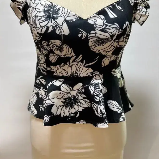 블랙과 화이트 꽃무늬 페플럼 타이트 드레스. - 색상: 블랙과 화이트 꽃무늬 - 디자인: 페플럼 스타일 - 소매 스타일: 프릴 소매 - 백 디자인: 지퍼 - 핏: 타이트 핏 방문해 주셔서 감사합니다.