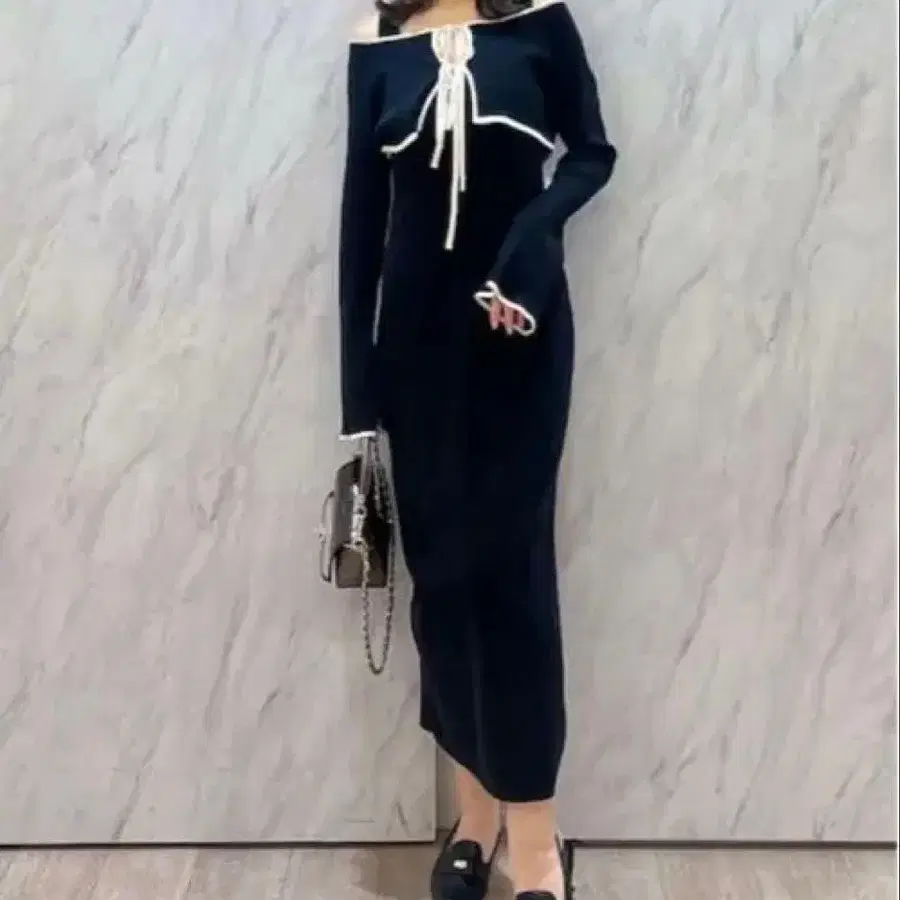 3WAY 배색 스트랩 백 크로스 롱 슬리브 원피스 머큐리 듀오