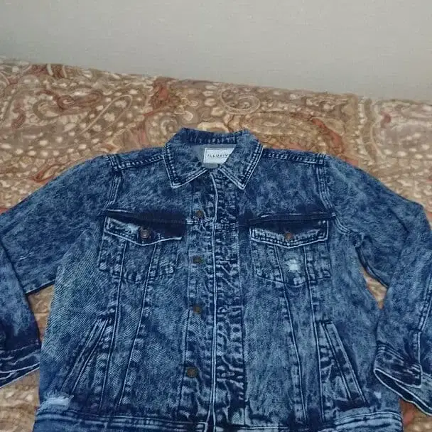 데님 자켓 프린트 데미지 가공