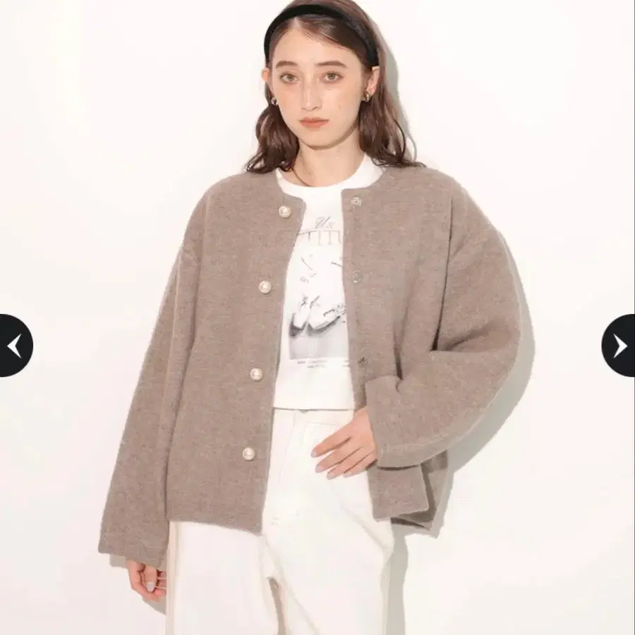 라지엠 샤기 니트 가디건 숏 기장 펄 진주 단추