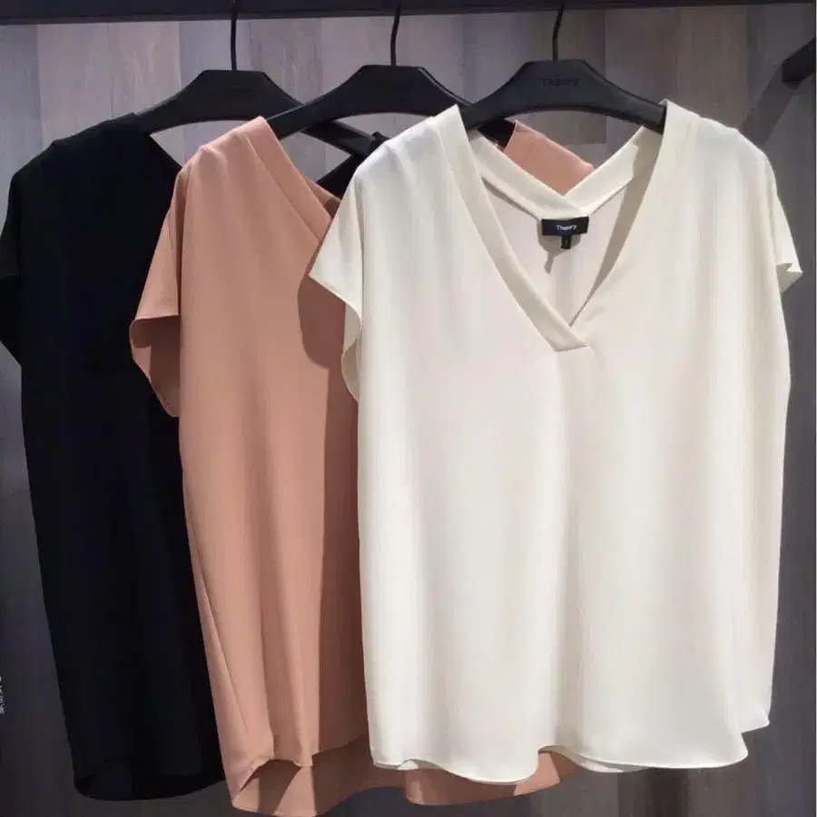 띠어리 블라우스 화이트 V넥 셔츠