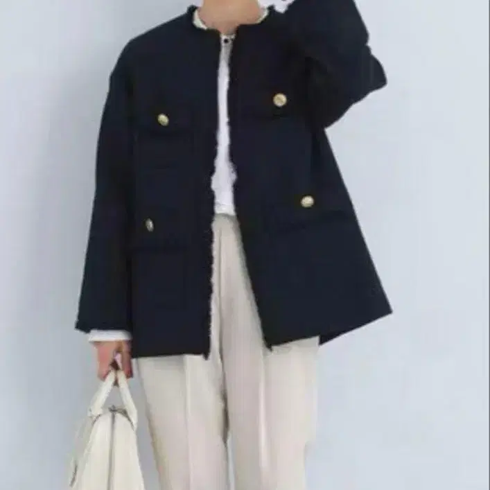 그린 라벨 릴랙싱 트위드 노카라 자켓 컬러 - 네이비 사이즈 - 38 접어서 발송합니다.