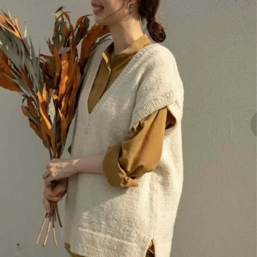 아이보리 V넥 니트 베스트, 슬릿 포함