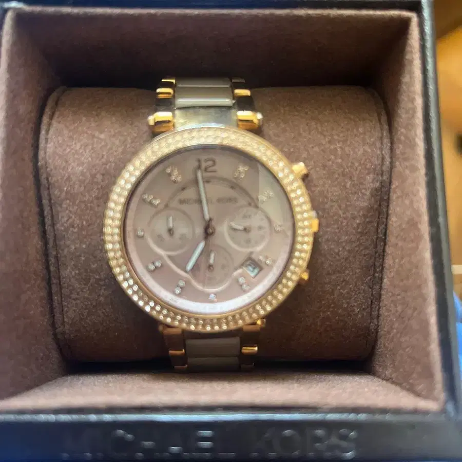스톤 장식의 골드와 실버 아날로그 손목시계. ※ 배터리 방전으로 인해 교환이 필요합니다. - 브랜드: MICHAEL KORS - 색상: 골드/실버 - 스타일: 아날로그 - 특징: 스톤 장식 - 케이스 소재: 스테인리스 스틸 - 밴드 소재: 스테인리스 스틸 - 사이즈: 중형 방문해 주셔서 감사합니다.